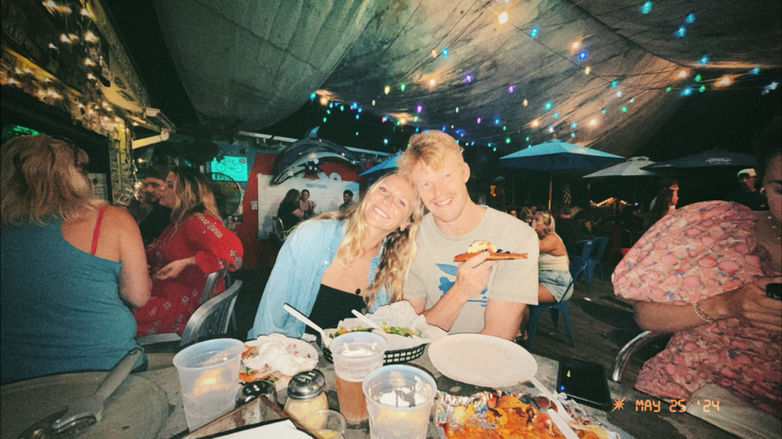 It was Anna's second week of living on Tybee Island and their boss, Graham insisted on taking all the 4-H girls to Huc-A-Poo's (a Tybee Island classic). At the time, Anna was living on a seasonal educator salary and wanted to save her money on beer, so when she said she was wanted to try pizza, her boss made a bet that she could get pizza from anyone in this bar. He pointed to Carlton and Jackson and bet on them.